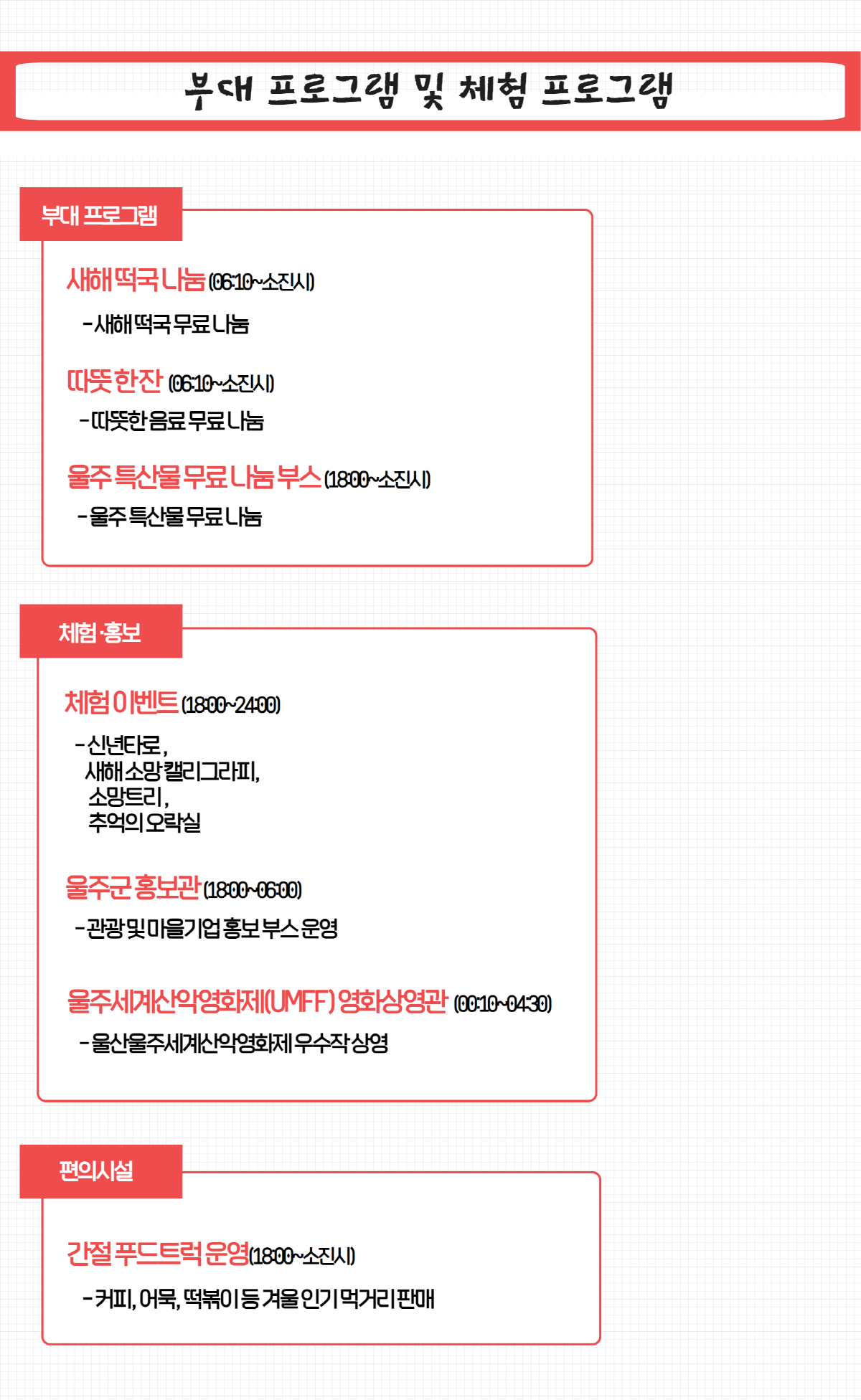 그 외에도 축하 불꽃놀이와 함께, 새해 떡국 나눔까지 준비되어 있어요
