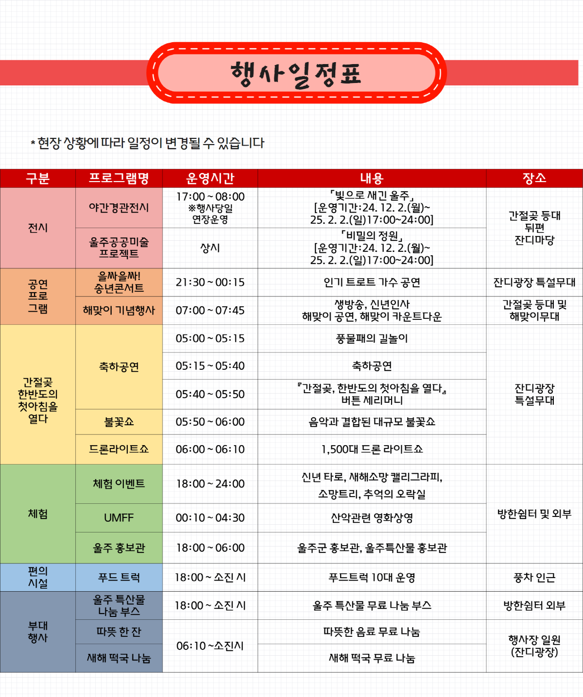 매년 많은 사람들이 이곳을 찾아 새해의 시작을 기념하는데요, 올 해도 다양한 프로그램들이 준비되어 있어 더욱 기대가 됩니다!