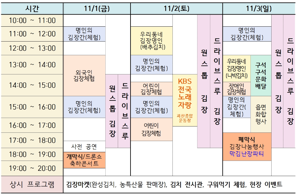 ❍ 주요내용 : 김장체험 관련 온‐오프라인 행사, 농특산물 판매 등