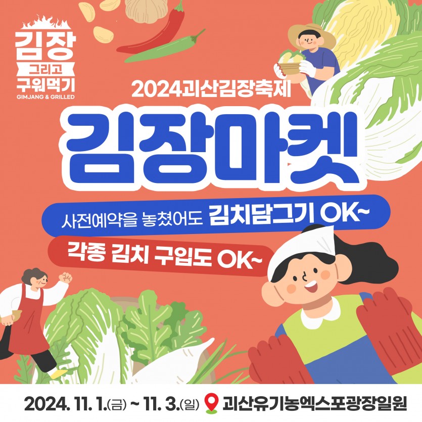 ※ 사전예약자 전용 주차장에 주차 후, 괴산유기농엑스포광장 막구조물 ‘원-스톱 김장 구역’에서 진행합니다.