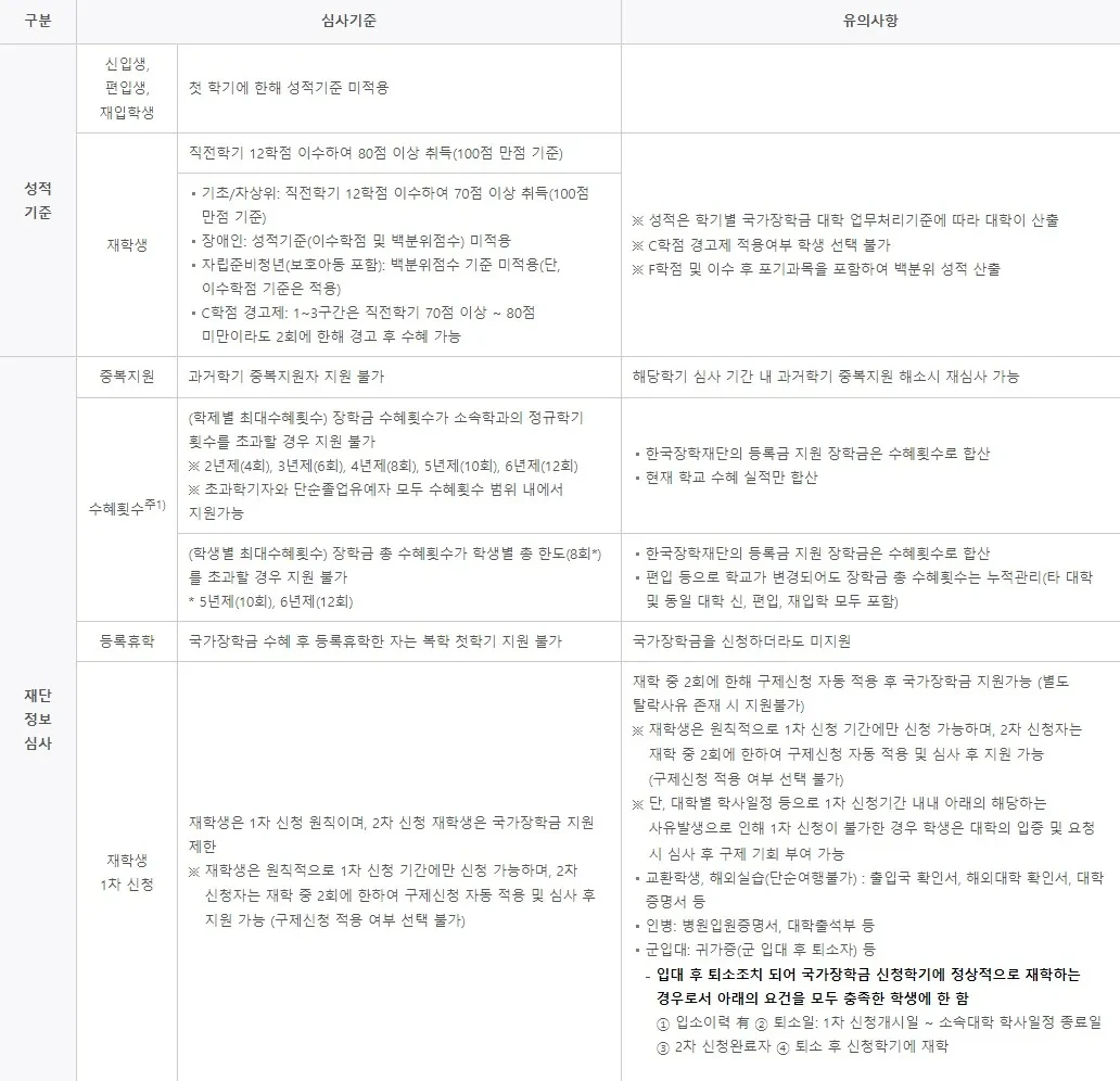 ※ 재학생은 국가장학금 1차 신청이 원칙이며, 신청기간 미준수 시 재학 중 2회에 한하여 구제 적용됨