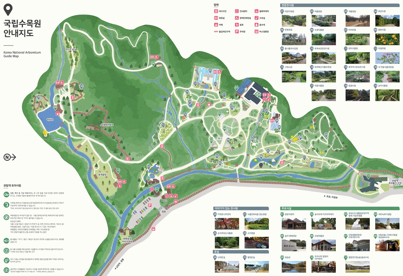 수목원 관람 구역: 수목원은 식물 연구 및 보존을 목적으로 설립되었기 때문에 일반 관람이 제한되어 있습니다. 하지만 지정된 구역에서는 자연 경관을 즐기며 산책을 할 수 있습니다.
