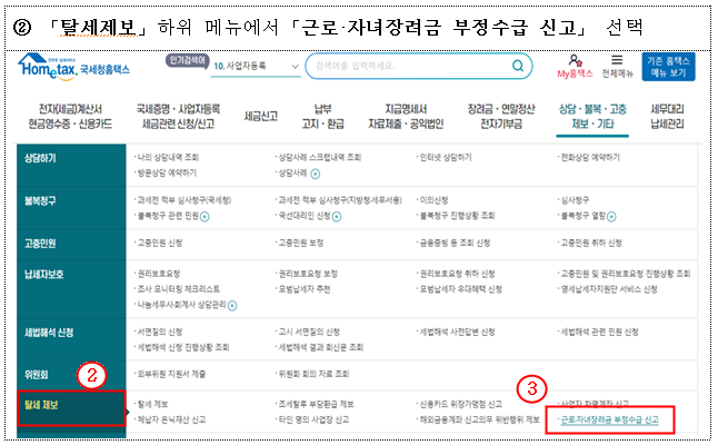 또한, 소득 증빙을 허위로 발급받거나 고소득임에도 장려금을 수급하는 등의사례에 대해서는 홈택스를 통해