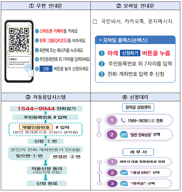 신청안내문을 받은 경우,안내문을 활용하여 신청하거나1544-9944(자동응답시스템)로 전화하여 신청할 수 있습니다.