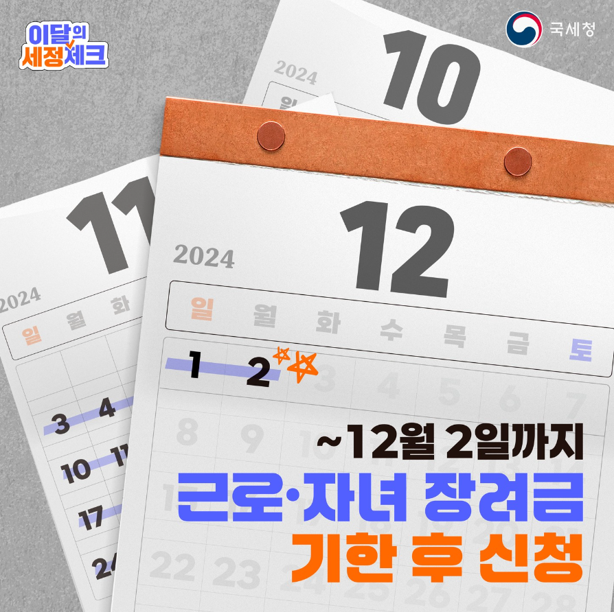 2023년 소득에 대한 근로·자녀장려금 12. 2.까지만 신청 가능 이번 기회를 놓치지 마세요