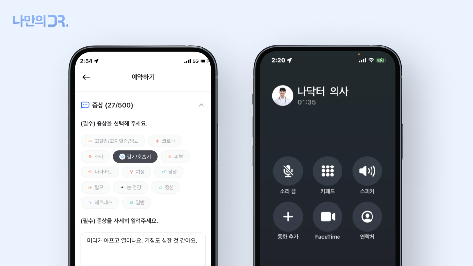 의사와의 통화를 통해 필요한 진료를 받을 수 있습니다.