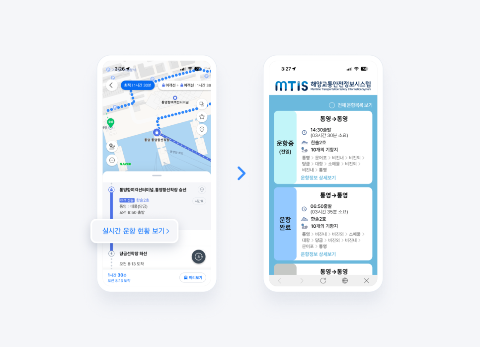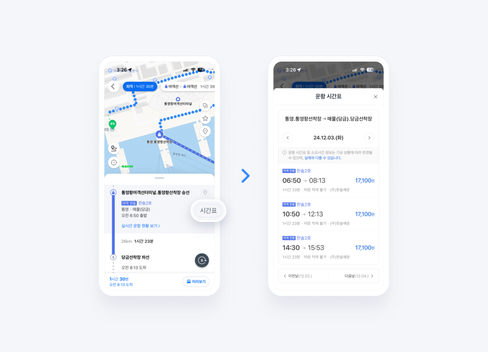 앞으로 네이버 지도에서 여객선 운항 경로, 시간표 등을 실시간으로 확인할 수 있다.
