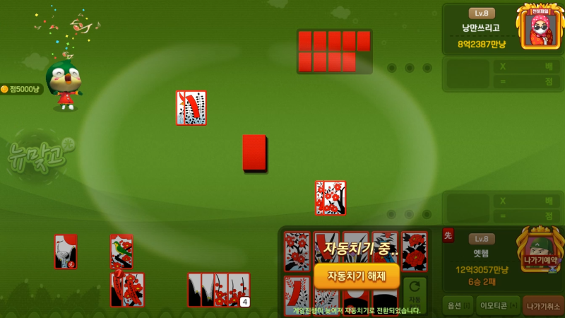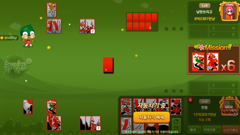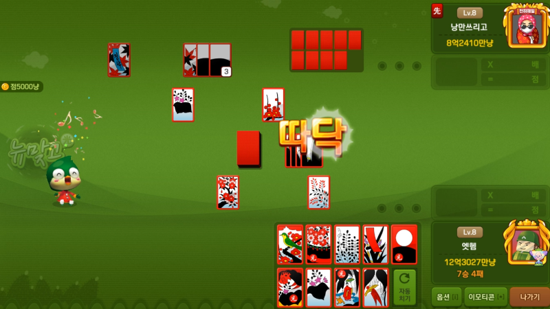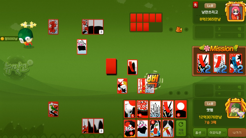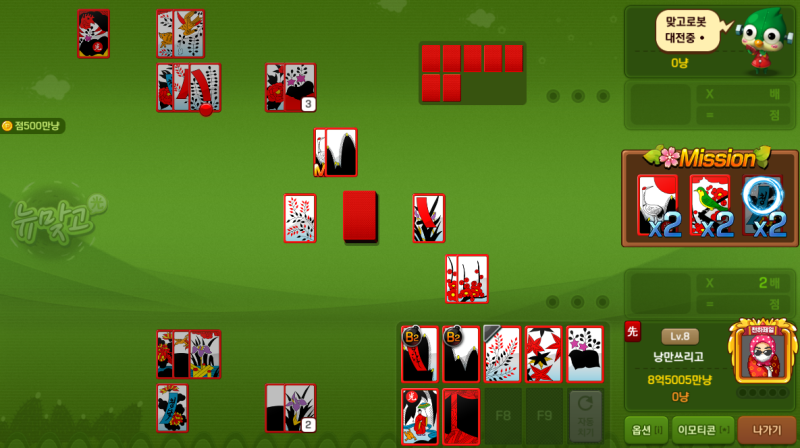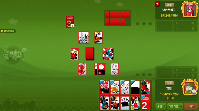 사용자 각각 손패 10장, 바닥패 8장을 나눠준 뒤 게임이 시작됩니다.
