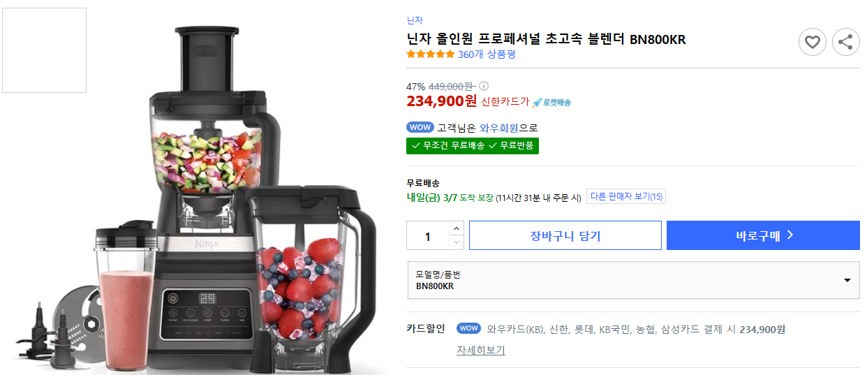 현재 별점 4.8점, 리뷰 360개를 가진 닌자 올인원 프로페셔널 초고속 블렌더 BN800KR! 지금 쿠팡에서 더 저렴하고 다양한 믹서기/블렌더 제품들을 확인해보세요.