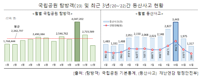 * 등산사고 : 총 24,302건(10월 3,443건), 인명피해 : 총 12,394명(10월 1,759명)