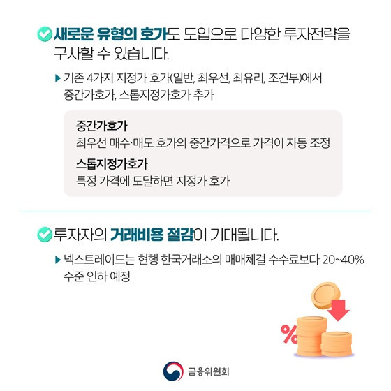 - 주식거래 시간 연장, 호가 유형 다양화, 거래비용 절감 등