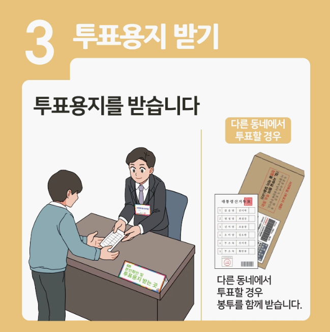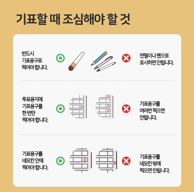 기표소에서 한 칸만 정확히 기표한 뒤 투표함에 넣으면 끝입니다.