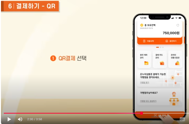 온라인·모바일 결제는 앱 내 QR코드 결제 기능(제로페이 계열, 온누리페이 등 제휴 앱 통합 제공)을 활용하면 됩니다.