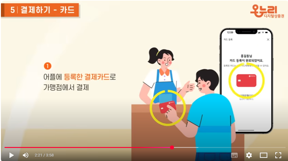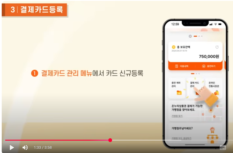 온누리상품권 가맹점 방문 후 어플에 등록된 카드로 결제합니다.