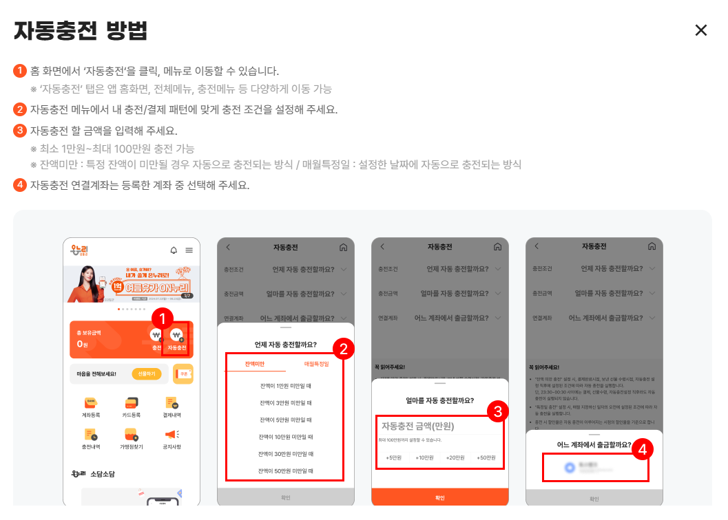 온누리상품권의 자동충전 기능을 이용하시면 편리하게 잔액을 일정 금액이상으로 유지할 수 있습니다.
