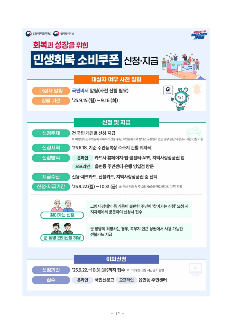 □ 고령자 등 거동이 불편한 국민을 대상으로 해당 지방자치단체에서 직접 방문해 민생회복 소비쿠폰을 지급하는 ‘찾아가는 신청’도 운영한다.