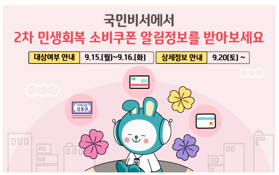 정부는 국민비서 ‘민생회복 소비쿠폰 안내 서비스’를 통해 대상 여부와 신청 방법을 미리 안내해 주고 있어요. 국민비서를 다운로드 받아서 미리 확인해보세요.