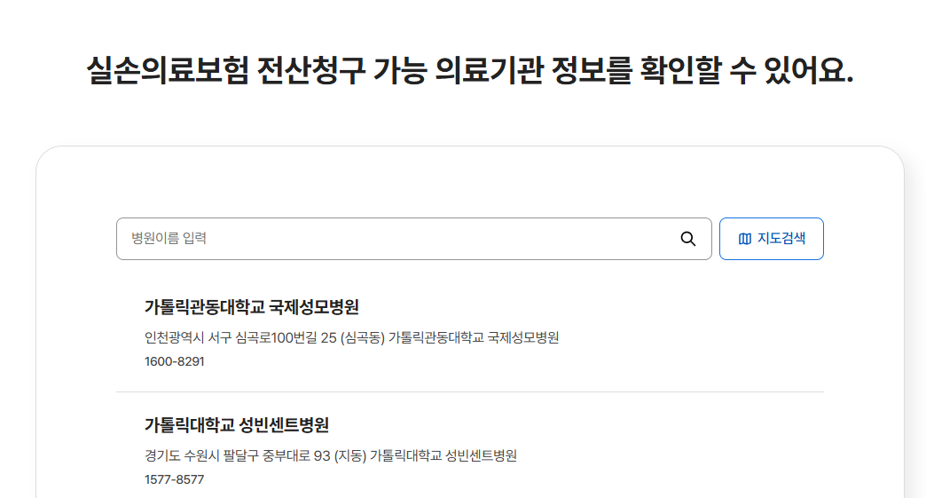 - 병원 이름을 몰라도 괜찮습니다. 실손24에서는 원하는 지역에서 내가 다녀온 병원을 모두 찾을 수 있습니다.