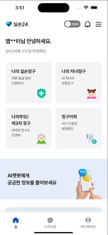 부모님 핸드폰으로 보험사 앱을 통해 청구를 대신하면 편리합니다.