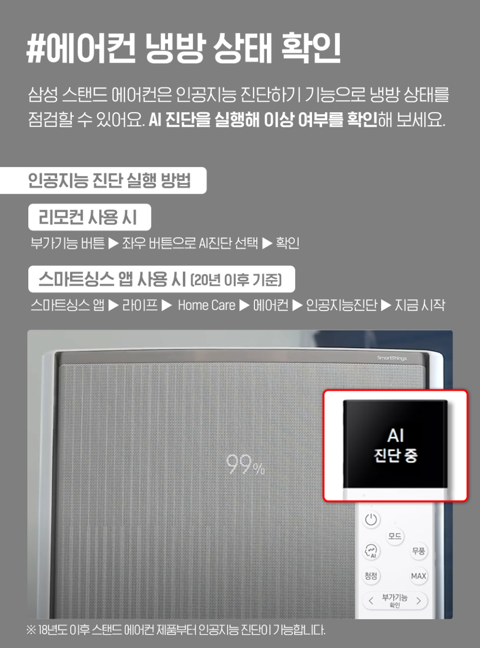 * 18년도 이후 스탠드 에어컨 제품부터 인공지능 진단이 가능합니다.