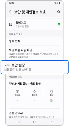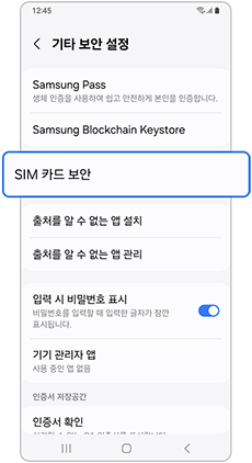 2단계) 기타 보안 설정을 선택 후 SIM 카드 보안을 선택합니다.