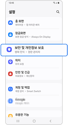 1단계) 설정에서 생체 인식 및 보안을 선택합니다.