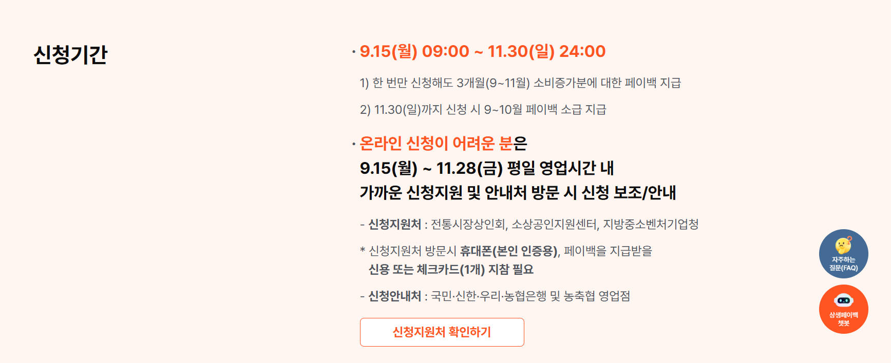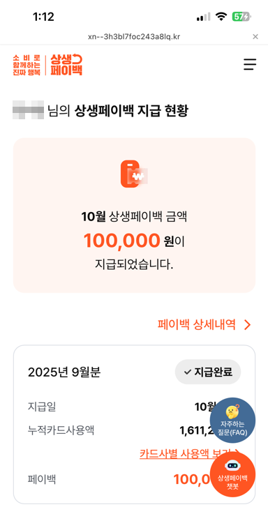 - 각 카드사 앱(신한, 국민, 롯데 등)에서도 혜택·이벤트·정부지원 메뉴에서 상생페이백 조회가 가능합니다.