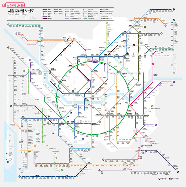 국제표준의 8선형 적용과 원형 형태를 적용한 2호선 순환선을 중심에 두어 강조하고,