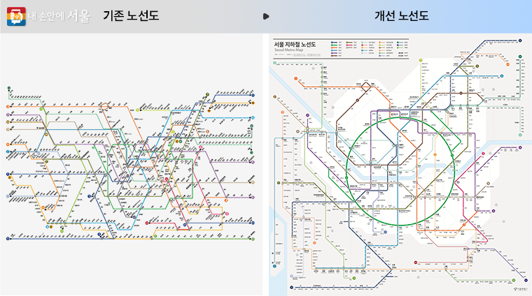서울시 지하철 노선도가 40년 만에 바뀐다. 지하철 노선이 1980년대 4개 노선(106개 역)에서 2000년대 9개 노선(338개 역)을 거쳐 현재 23개 노선(624개 역)으로 계속 증가하고 있지만, 노선도는 1980년대의 형태를 유지한 채 노선만 추가되어 다양한 형태로 혼용되고 있어 추가 확장 노선의 적용이 어려운 상황이다.