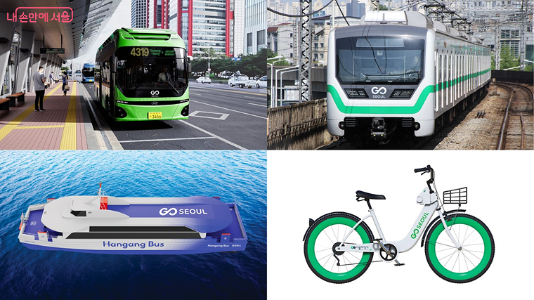 서울 교통 통합브랜드 ‘GO SEOUL(고 서울)’ 적용 대상은 ‘기후동행카드’로 탑승 가능한 버스, 지하철, 공공자전거 따릉이, 한강버스 총 4가지. ‘SEOUL’을 ▴BUS(버스) ▴METRO(지하철) ▴RIVER(한강버스), ▴BIKE(따릉이)로 변환‧활용하는 방식이다.