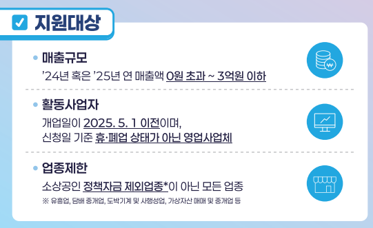 - 연매출 3억 원 이하 소상공인 (2024년 또는 2025년)
