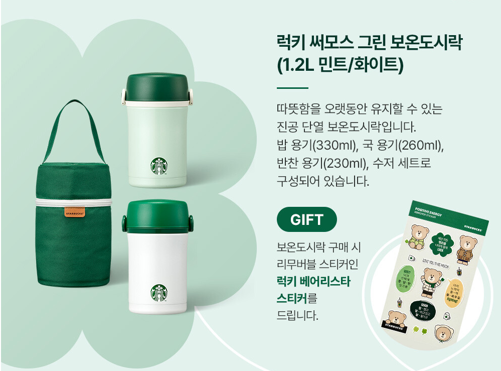 보온 보냉 용품으로 유명한 써모스 제품으로 색상은 민트와 화이트 2종류입니다.
