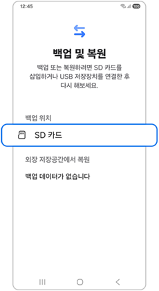 SD카드/외장 USB 저장장치를 갤럭시 기기에 장착/연결한 후 스마트 스위치의 SD카드/외장 USB 저장장치 백업 메뉴를 통해 백업하고, 복원할 수 있습니다.