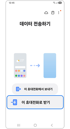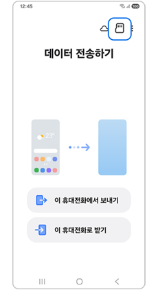 1단계) 휴대전화에서 스마트 스위치(Smart Switch) 앱 실행 후 상단의 SD카드 아이콘을 선택하세요.