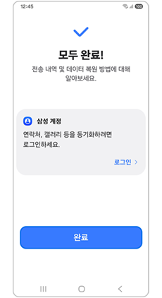 ※ 스마트 스위치 복원 전, 새 갤럭시 기기에 카카오톡 앱이 설치되어 있다면 데이터 복원이 되지 않습니다. 새 기기의 카카오톡 앱을 삭제 후 전송해주세요.스마트 스위치에서 메신저 앱의 데이터 전송 방법 바로가기 ▶