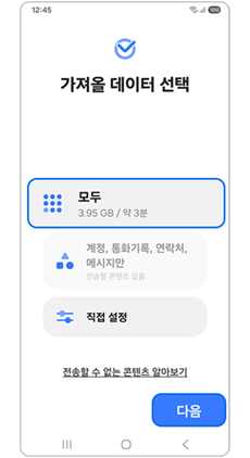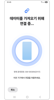 4단계) 이전 휴대전화에서 연결을 허용하고 가져올 데이터 선택 후 다음을 눌러 전송하세요.