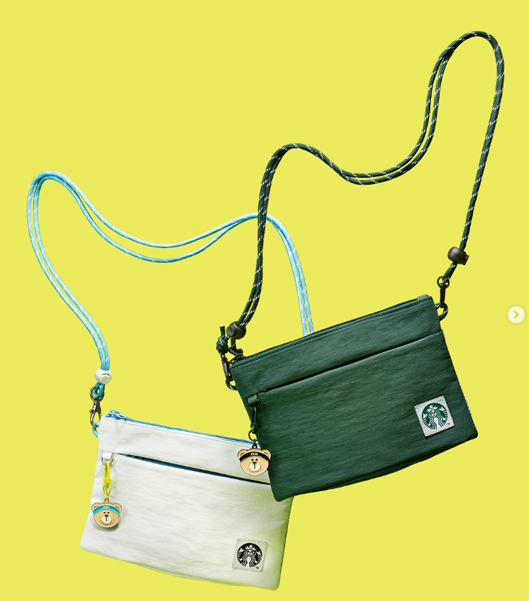 ✅ 데일리 파우치 백은 (화이트/코어그린) 2종이며, 탈부착 및 길이 조절 가능한 스트랩과 베어리스타 키링으로 구성되어 있습니다.