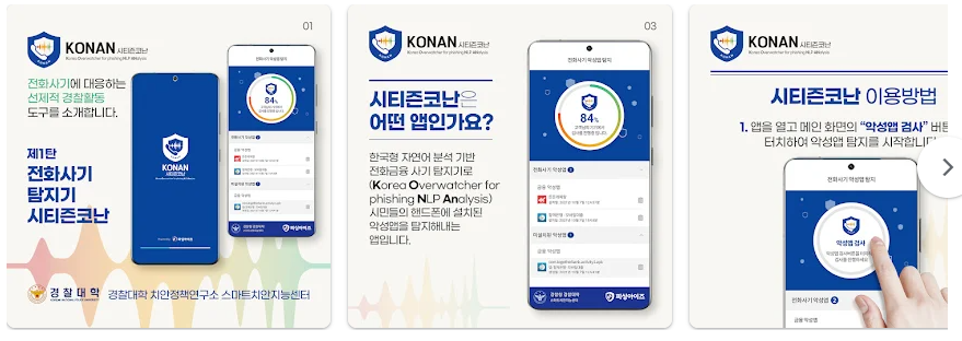 시티즌 코난 앱을 지금 바로 설치하고, 보이스 피싱 및 스미싱으로부터 나와 나의 가족, 친구를 지켜주시기 바랍니다.