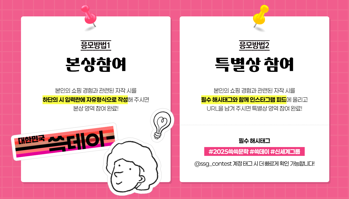 💗 1년에 단 한 번, 상상 그 이상 쓱데이 매직! 올해도 어김없이 찾아온 대한민국 쓱데이 맞이 𝐁𝐈𝐆 𝐄𝐕𝐄𝐍𝐓 제 1회 "전국민 쓱쓱문학 프로젝트"를 개최합니다