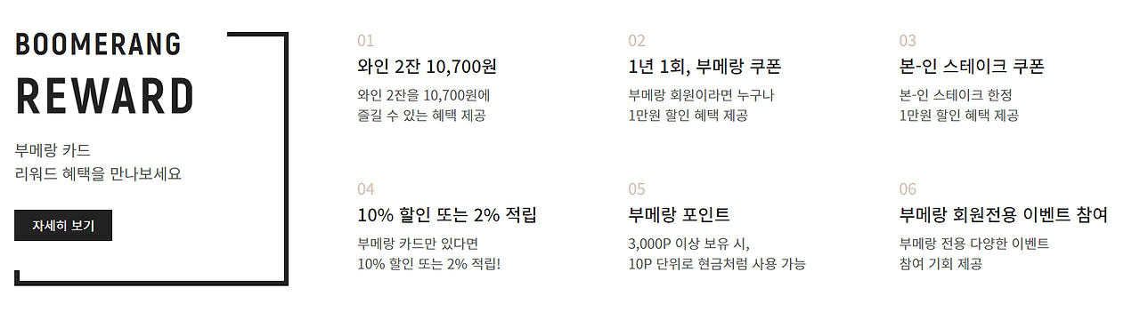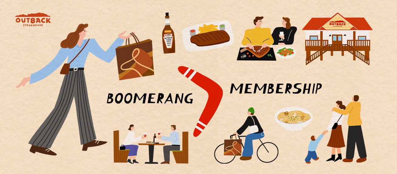 부메랑 클럽은 아웃백 전용 멤버십으로 아웃백 이용 예정이라면 꼭 받아야 하는 혜택입니다.