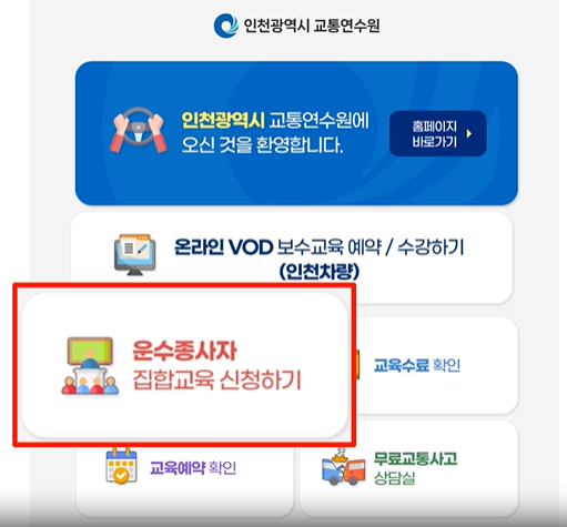 인천교통연수원 온라인 교육 예약은 홈페이지를 통해서만 가능합니다.