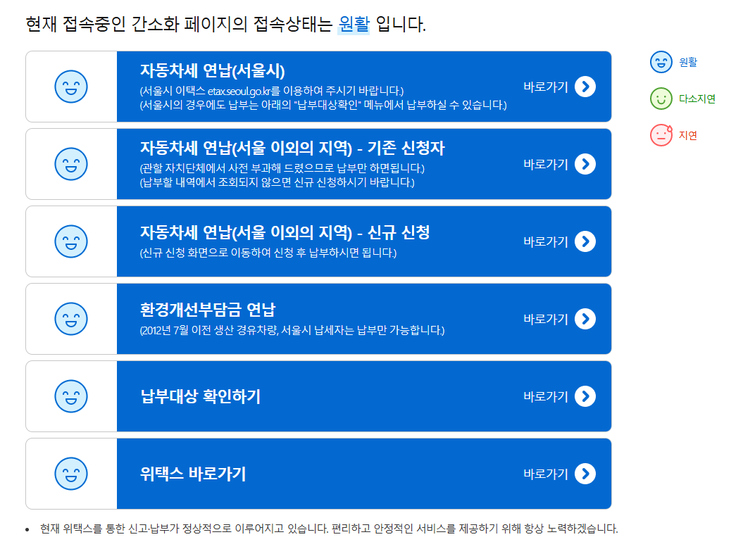 - 납부: 선택한 방법으로 자동차세를 납부합니다.