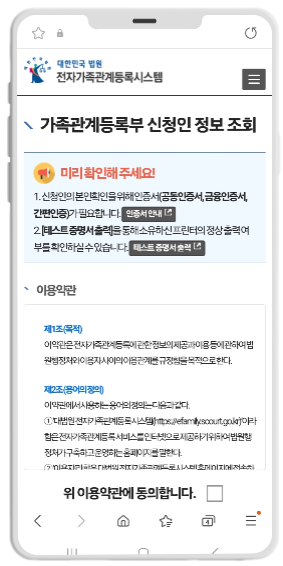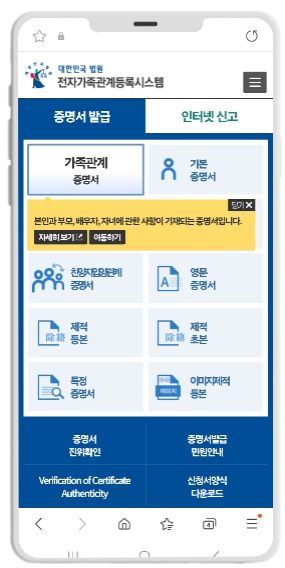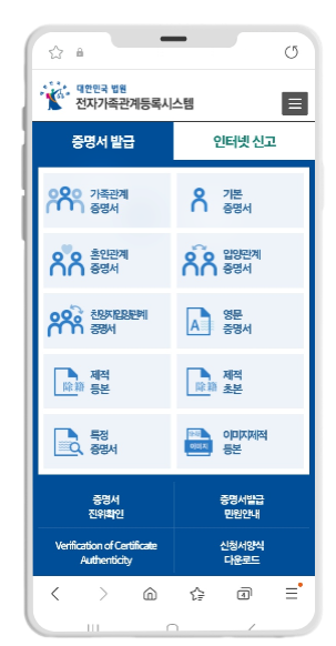 - 서류 선택: 앱 내에서 발급하고자 하는 서류를 선택합니다. 예를 들어, 가족관계부를 선택할 수 있습니다.
