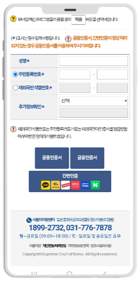 - 로그인: 앱을 실행한 후, 간편 인증 또는 공동·금융인증서를 이용하여 로그인합니다.