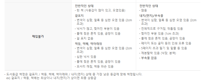 - 스프링제본, 분철, 불법복제물 및 외관적으로 판매가 불가능한 경우