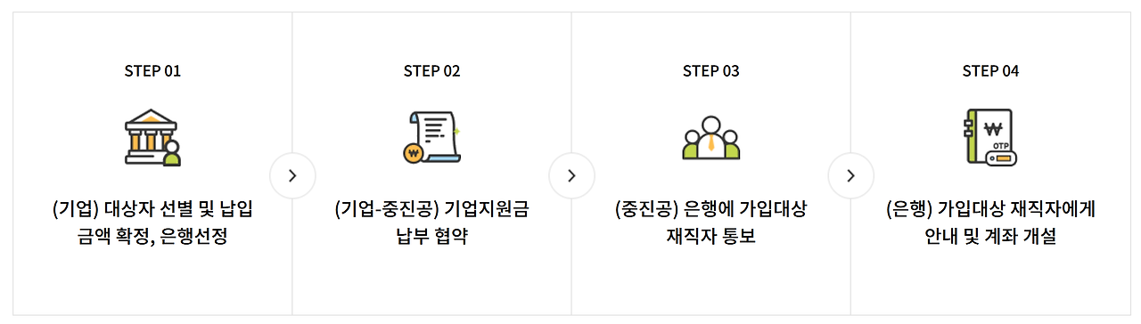 중소기업은 재직자 납부금의 20%를 지원하여 5년 만기 시 재직자에게 전액 지급하는 상품입니다.