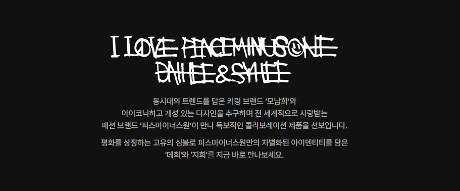 이번 콜라보레이션은 피마원의 평화를 상징하는 심볼과 모남희의 독창적인 디자인이 결합된 아이템으로, 두 브랜드의 정체성과 개성이 돋보이는 제품입니다.
