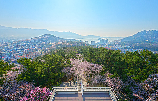공원의 정상에서 내려다보는 진해 시내의 벚꽃 풍경은 가히 환상적입니다.