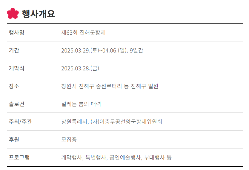 ✅ 축제 날짜 : 2025년 3월 29일~4월 6일 (9일간)