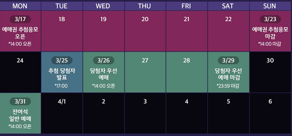 2025년 3월 31일(월) 14:00부터 선착순으로 예매 가능